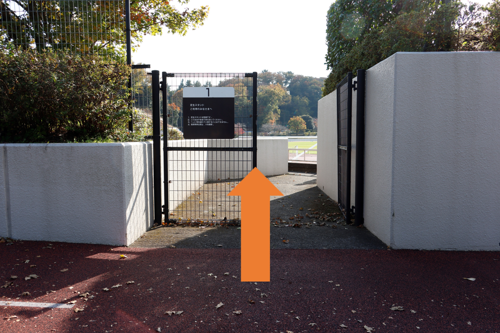 ➀写真の入場口より、チケットを提示して入場。(芝生自由席と同じ入場口になります)