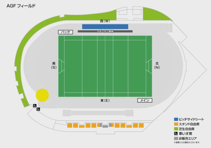 ※ピッチサイドシートについて、フィールドゲート①のバックスタンド観客動線の方向にお進みください。ピッチサイドシートでの観戦方法は詳細が決まり次第お知らせいたします。