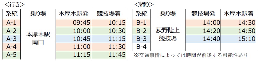 ※本厚木駅⇔厚木市荻野運動公園競技場シャトルバスのご案内(確定次第情報を更新いたします)